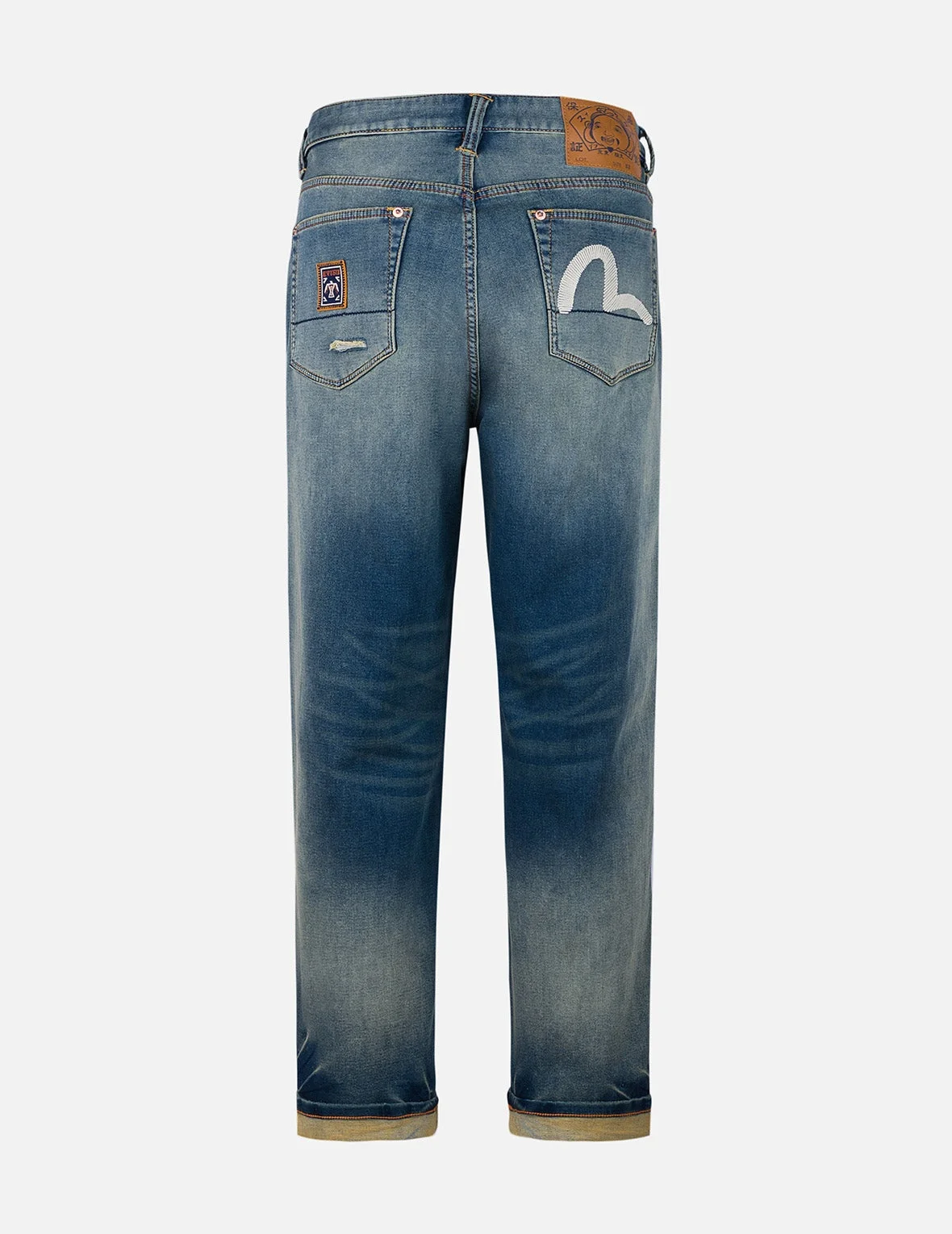 Seagull Embroidery with Hand-Woven Lanyard Relax Straight Fit Jeans #2030