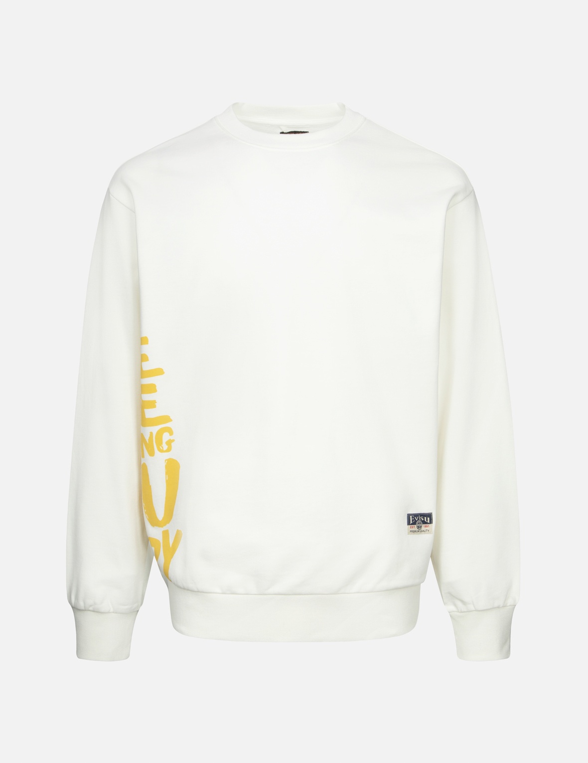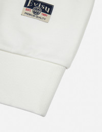 2EAHTM4SW1114RXCT Deceptively simple on the surface, this sweatshirt conceals a bold, unexpected design. The minimalist front gives way to a washed, textured seagull pocket graphic on the back, infusing the piece with unique vintage flair. Accented by the vibrant yellow EVISU slogan on the side, the design celebrates the brand's iconic identity. FIT & STYLING: RELAX CARE MACHINE WASH COLD INSIDE OUT DELICATE CYCLE DO NOT BLEACH HANG DRY ONLY COOL IRON ON REVERSE SIDE IF NEEDED STEAM IRONING MAY CAUSE IRREVERSIBLE DAMAGE DO NOT DRY CLEAN DO NOT IRON ON PRINT