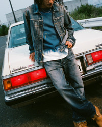 2ESEJM5DJ6003XXDN The denim collection is produced in limited quantities in Okayama, Japan, faithfully reviving EVISU’s iconic classics while showcasing exceptional craftsmanship and attention to detail. This denim trucker jacket is colored using dip-dye techniques, resulting in uniquely layered tones. Inspired by EVISU’s original designs, the collection incorporates signature 1990s wash elements, the distressed Seagull graphic on the chest pocket, combined with unique washed effects and ink splatter details, creates a rich visual texture. The adjustable buckle strap on the back adds both style and practicality, perfectly accommodating various body shapes. - Made in Japan - Regular fit - 100% Cotton - Seagull print - Adjustable buckle strap - Button fastening, 1 pocket