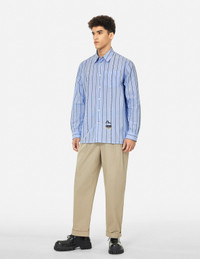 2ESHTM5SL1071FFCT This shirt features a striped design, cleverly incorporating a yarn-dyed logo that presents the brand's exclusive unique stripes. The overall design is clean and simple, with flowing lines complemented by a small Seagull embroidery that adds delicate brand details, showcasing a perfect blend of style and quality, suitable for various occasions. - Fashion fit - 100% Cotton - Yarn-dyed striped logo and Seagull embroidery - Button fly, 1 pockets