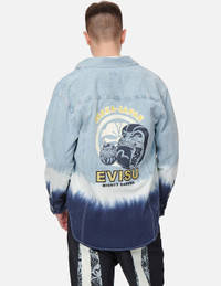 2ESHTM2SJ710XXDN Inspired by the summer sea view, this denim shirt jacket is tie-dyed for gradated blue palette, featuring a back print of Daruma Buddies and Kamon. Logo and Japanese proverb Never give up are embroidered to display a trendy style. - 10.3oz tie-dyed denim - Loose fit - Daruma Buddies and Kamon print, logo, slogan and Kamon embroidery - Button fastening, long sleeves, 4 pockets - 100% Cotton