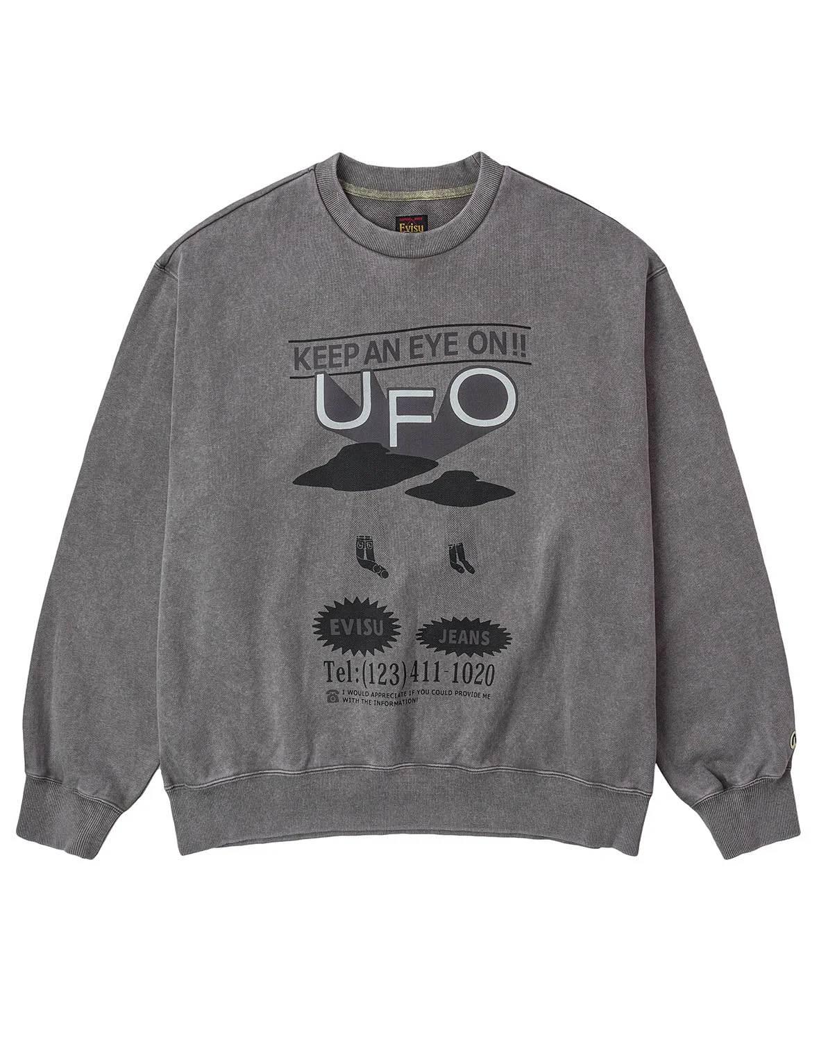 2EAEJM5SW6017RXCT The EVISU hoodie for the new season features a humorous and unique design, depicting the amusing scene of jeans being abducted by a UFO, resembling a quirky missing person notice. The vibrant print pairs perfectly with the Seagull applique on the cuffs, adding a touch of personality and creativity. - Relax fit - 100% Cotton - UFO print - Seagull applique