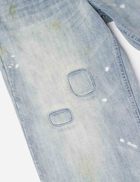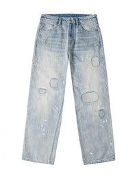 2EAEJM5JE6006LFDN This pair of jeans features heavy washing, incorporating patchwork design and vintage treatment, showcasing a unique retro style. The pants have rust marks, distressed details, utility stitching, paint splatters, and washed whisker effects, complemented by the brand's Seagull print for added flair. Whether for daily wear or casual activities, these jeans will enhance your look with personality and style. - Loose fit - 100% Cotton - Seagull print - Washed, patchwork design, and vintage treatment - Zip fly, 5 pockets