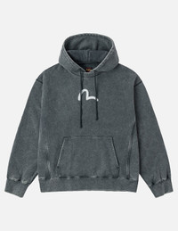 Washed Seagull and Logo Print Relax Fit Hoodie
