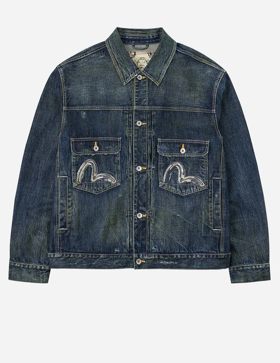 Washed Seagull Embroidery Relax Fit Denim Jacket