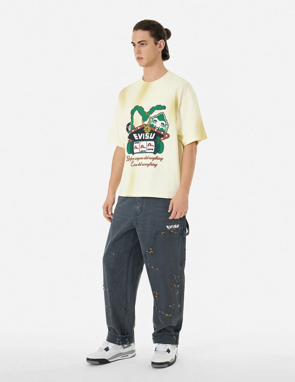 2EAHTM4TS8057RXCT Themed around "Virtual Vacation," this T-shirt has undergone a washing process to achieve a unique effect. Featuring brand motifs of Seagulls and lucky slot machines, along with Godhead, logo and slogans, it showcases a stylish and distinctive personality. FIT & STYLING: RELAX CARE HAND WASH INSIDE OUT AND SEPARATELY DO NOT BLEACH HANG DRY ONLY COOL IRON ON REVERSE SIDE IF NEEDED STEAM IRONING MAY CAUSE IRREVERSIBLE DAMAGE DO NOT DRY CLEAN DO NOT IRON ON PRINT