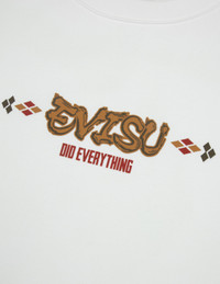 2EAHTM4SW1058RXCT This crewneck sweatshirt is crafted from premium cotton fabric. The front features a hand-written EVISU logo that prominently displays the brand identity. The back panel features the symbol of the eternal Wheel of Wisdom, which is complemented by the Kamon and logo. The design incorporates geometric patterns that significantly enhance the visual impact and brand recognition. FIT & STYLING: RELAX CARE MACHINE WASH COLD INSIDE OUT DELICATE CYCLE DO NOT BLEACH HANG DRY ONLY COOL IRON ON REVERSE SIDE IF NEEDED STEAM IRONING MAY CAUSE IRREVERSIBLE DAMAGE DO NOT DRY CLEAN DO NOT IRON ON PRINT