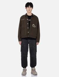 2EAGNM2DJ774XXCT Designed with reference to a mix of worker style and graffiti details, this denim jacket comes with worker pockets on the front, while the graffiti slogans are embroidered for extra coolness. The dark charcoal jacket is cut for a regular fit, and washed for a worn-in look. - Washed denim - Regular fit - Seagull, logo and graffiti slogan embroidery, slogan print - 4 pockets, long sleeves, button fastening - 100% Cotton