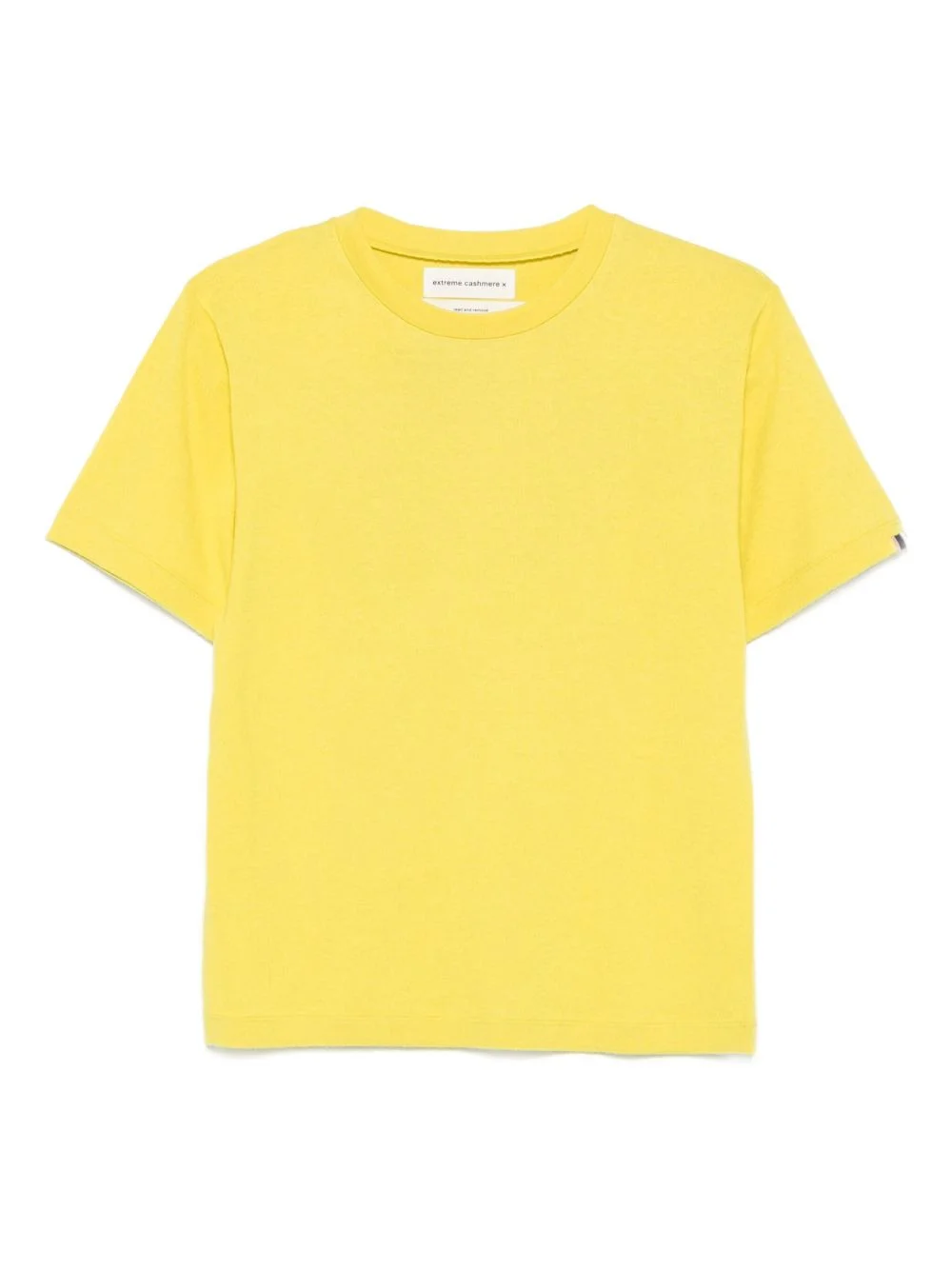 crew-neck short-sleeve T-shirt Highlights - Yellow - Crew neck - Short sleeves - Straight hem - Cotton-cashmere blend Imported Composition Cotton 70%, Cashmere 30% SIZE & FIT Model measurements Height 5 ft 9 in(1.75 m) Bust/Chest 34.64 in(88 cm) Hips 36.61 in(93 cm) Waist 26.37 in(67 cm) Measurement CHEST 39.37 in(100 cm) Shoulder Width 17.32 in(44 cm) WAIST 38.58 in(98 cm) Washing instructions Machine Wash