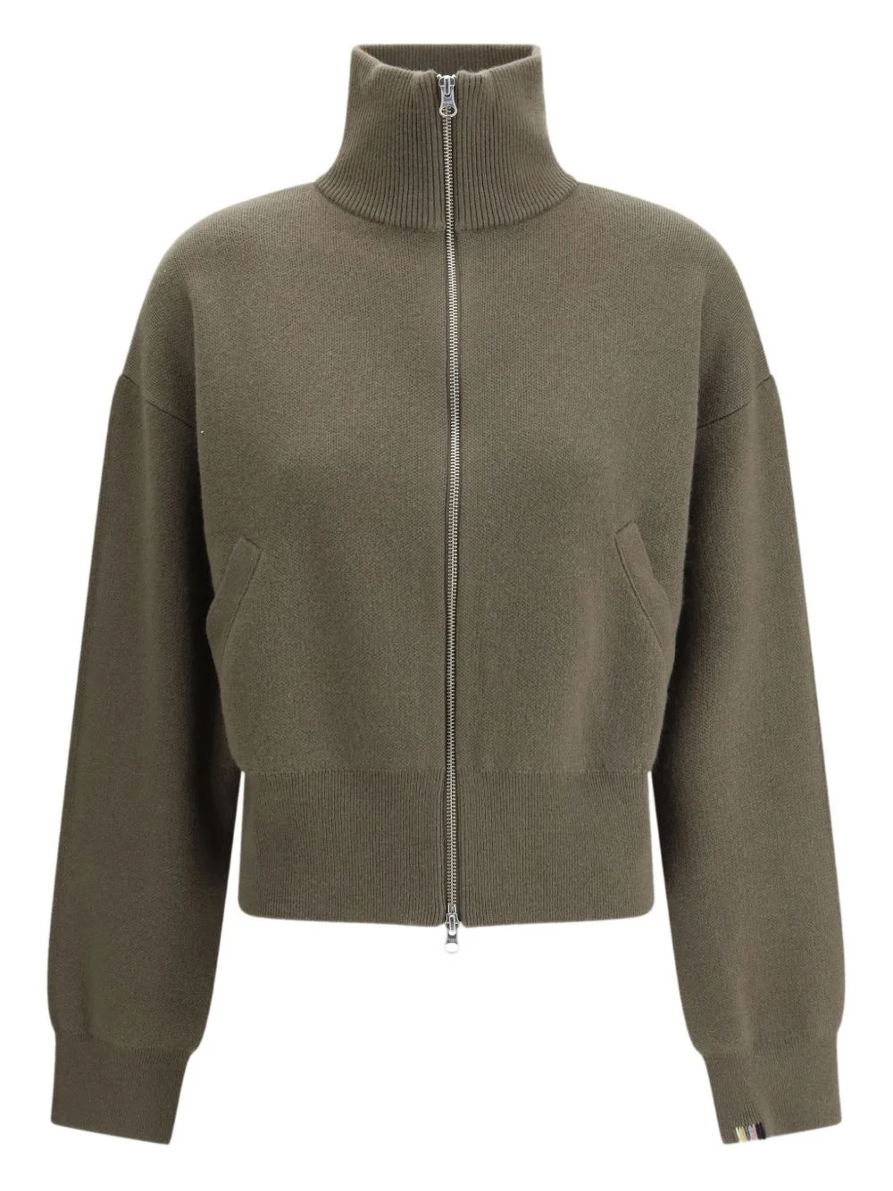 Nº 385 Xtra Fab zip-up cardigan Highlights - Army green - Zip fastening - Funnel neck - Long sleeves - Small patch on sleeve Imported Composition Cashmere 100% Washing instructions Read Manufacturer Guidelines