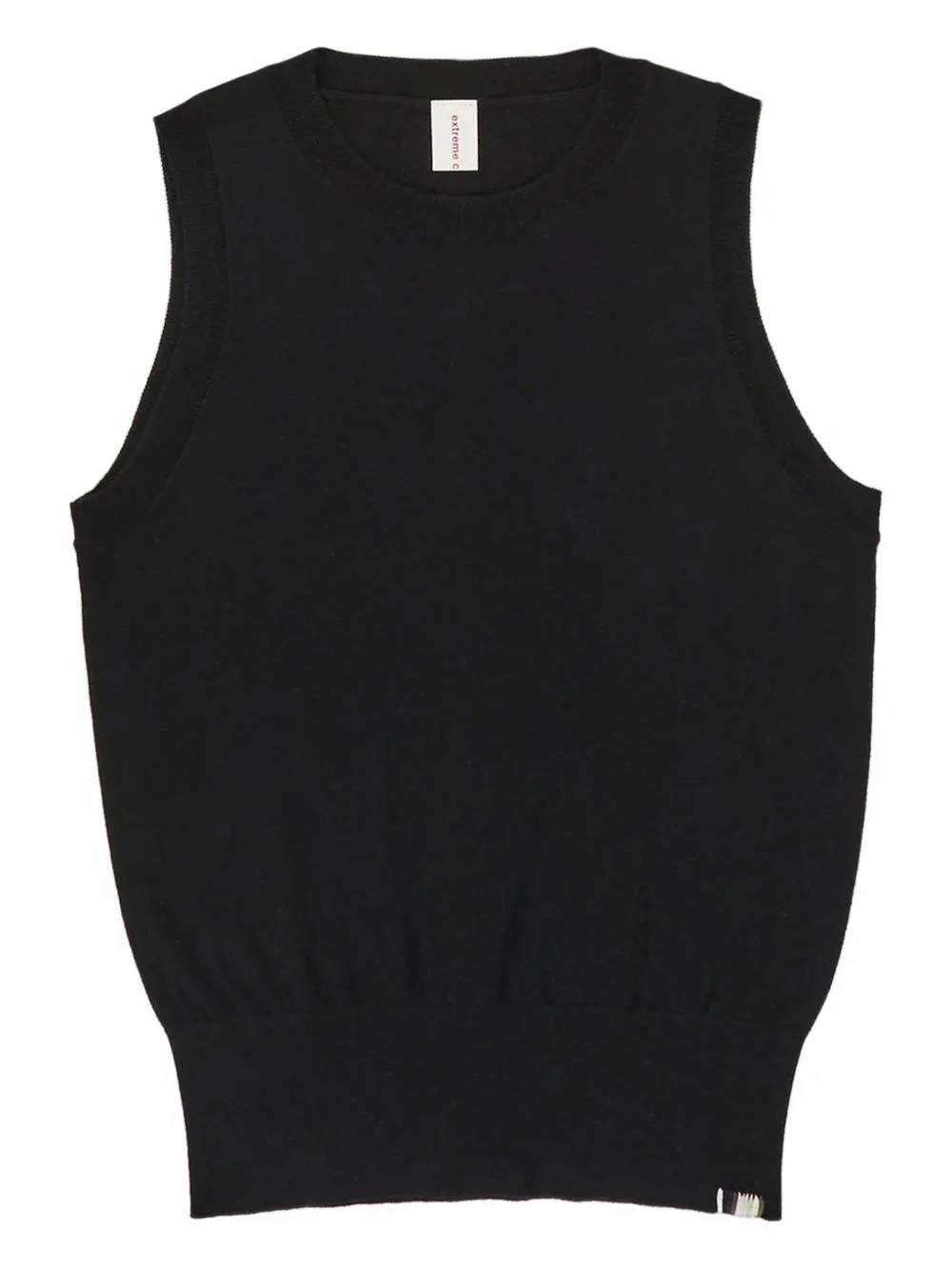 Nº 412 sleeveless knit top Highlights - Black - Ribbed detailing - High neckline - Ribbed hem - Seamless shoulders Imported Composition Merino 70%, Cashmere 30% SIZE & FIT FittingInformation This unisex piece is only produced in one size; for help with this item's sizing, refer to our product measurements Made with a lightweight knit, this piece offers some stretch