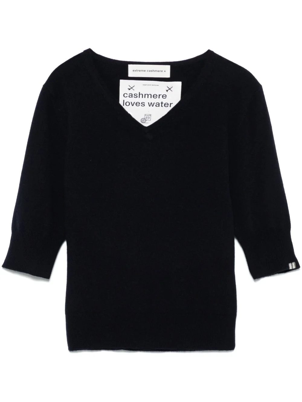 Nº400 Mel T-shirt Highlights - Navy blue - Ribbed v-neck - Half-length sleeves - When buying this unisex item, keep in mind that it is graded in standard men's sizing. Imported Composition Cashmere 100% SIZE & FIT Measurement CHEST 33.85 in(86 cm) Shoulder Width 15.74 in(40 cm) SLEEVE LENGTH 13.38 in(34 cm) WAIST 31.49 in(80 cm) Washing instructions Machine Wash
