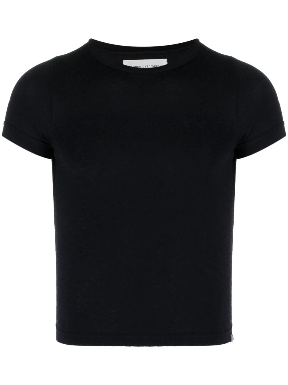 Nº292 America baby T-shirt Highlights - Black - Cotton-cashmere blend - Fine ribbed - Decorative stitching - Crew neck - Short sleeves - Straight hem - When buying this unisex item, keep in mind that it is graded in standard men's sizing. Imported Composition Cotton 70%, Cashmere 30% SIZE & FIT Model measurements Height 5 ft 10 in(1.78 m) Bust/Chest 32.67 in(83 cm) Hips 35.43 in(90 cm) Waist 23.22 in(59 cm) Measurement CHEST 27.55 in(70 cm) Shoulder Width 11.02 in(28 cm) SLEEVE LENGTH 5.51 in(14 cm) FittingInformation This unisex piece is only produced in one size Made with a midweight knit, this piece offers some stretch