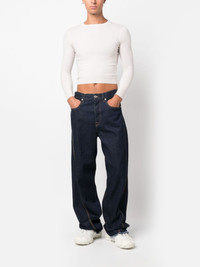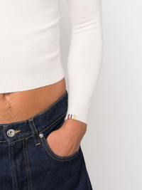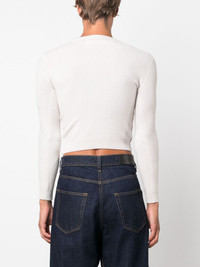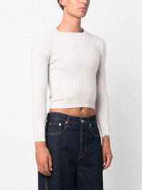round-neck cropped jumper Highlights - Chalk white - Cashmere blend - Fine knit - Embroidered logo at the sleeve - Round neck - Long sleeves - Straight hem - Cropped - Ribbed-knit edge - When buying this unisex item, keep in mind that it is graded in standard men's sizing. Imported Composition Cashmere 88%, Nylon 10%, Spandex/Elastane 2% SIZE & FIT Model measurements Height 6 ft 1 in(1.85 m) Bust/Chest 35.43 in(90 cm) Hips 35.82 in(91 cm) Waist 27.55 in(70 cm) Measurement BUST 13.77 in(35 cm) Shoulder Width 13.77 in(35 cm) SLEEVE LENGTH 19.68 in(50 cm) WAIST 13.77 in(35 cm) FittingInformation This unisex piece is only produced in one size Made with a midweight knit, this piece offers some stretch Washing instructions Dry Clean Only