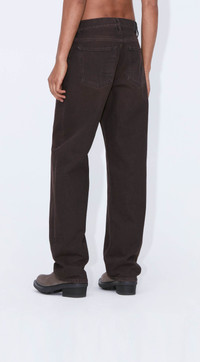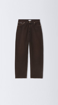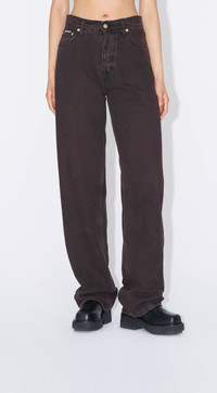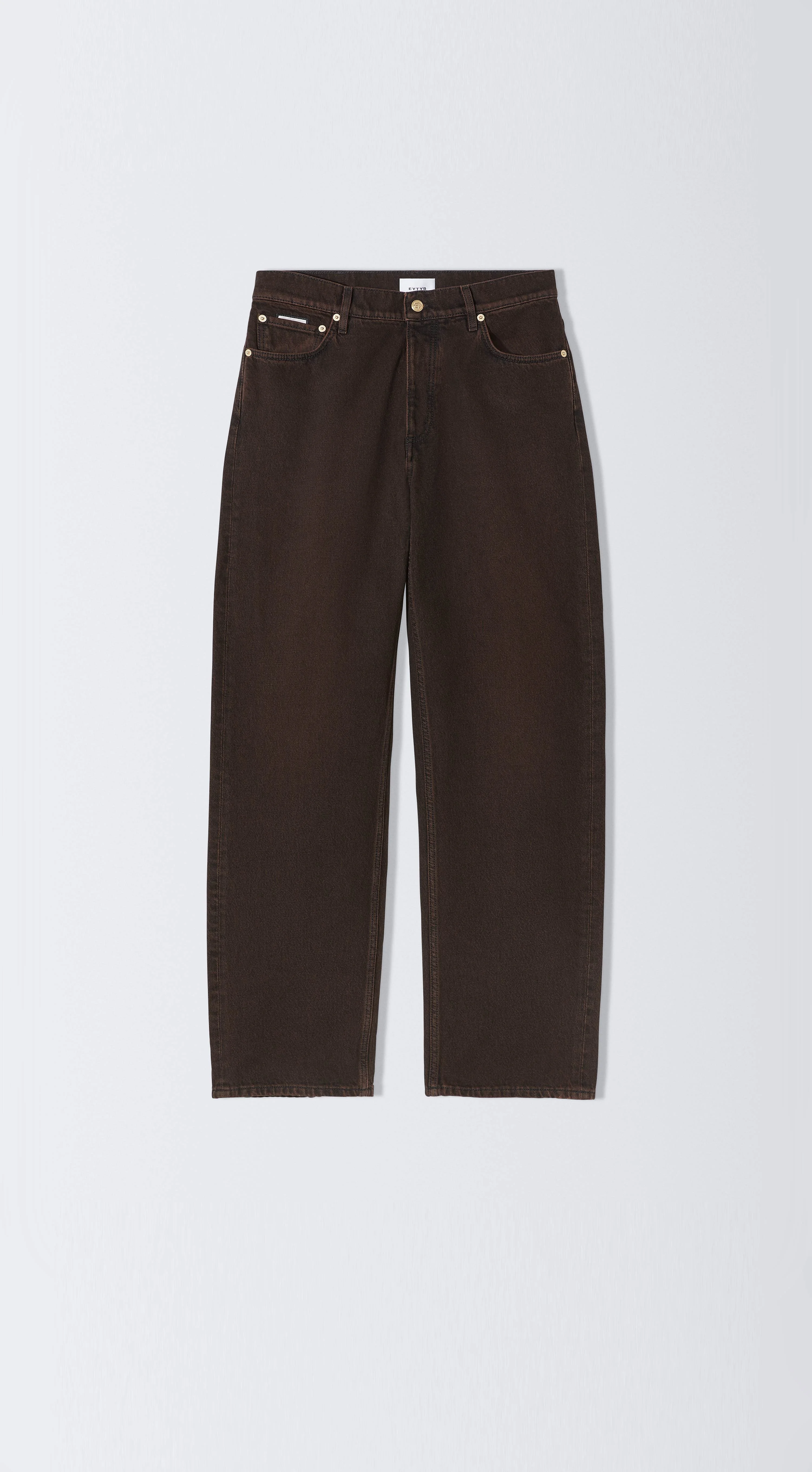 Reminiscent of ´90s style, ´Benz´ gives a contemporary take on the iconic baggy silhouette. This brown overdyed denim creates a warm and rich style perfect for any look. Elias is 190 / 6'3" and is wearing 30/34. This wash runs long - consider going for the shorter length if you are in between. Product Details: - Shell: 100% cotton - 5 pocket construction - Baggy fit - Tonal stitching - EYTYS label on coin pocket - Logo embroidery on back pocket - Button fly - Comes in two lengths - Branded metal trims - Made in Portugal - Unisex - Runs long