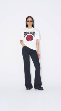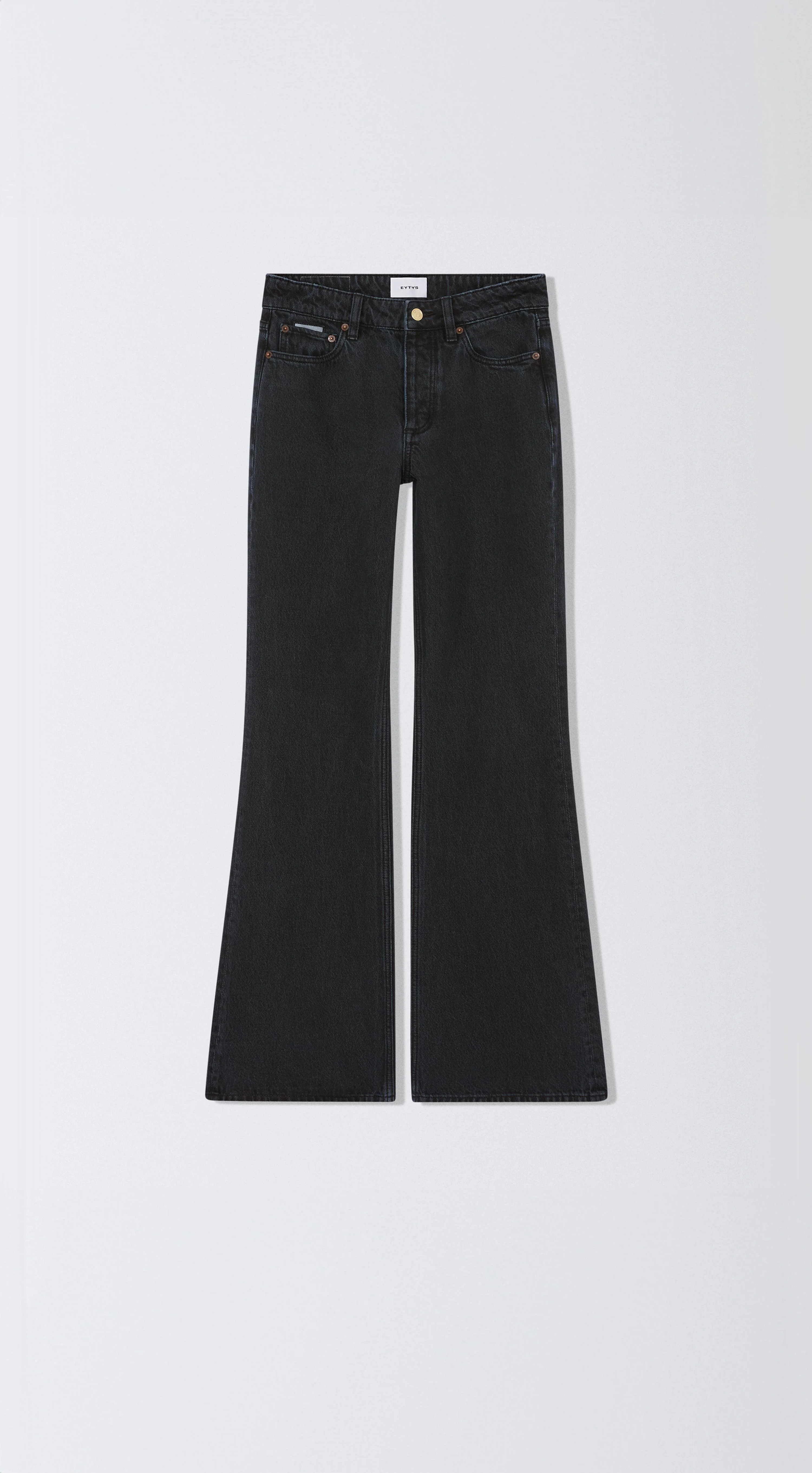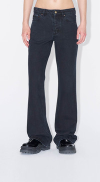 Product Details: - Bootcut fit - High rise - Shell: 100% cotton - 5 pocket construction - Tonal stitching - Logo embroidery on back pocket - Button fly - Branded metal trims - Made in China