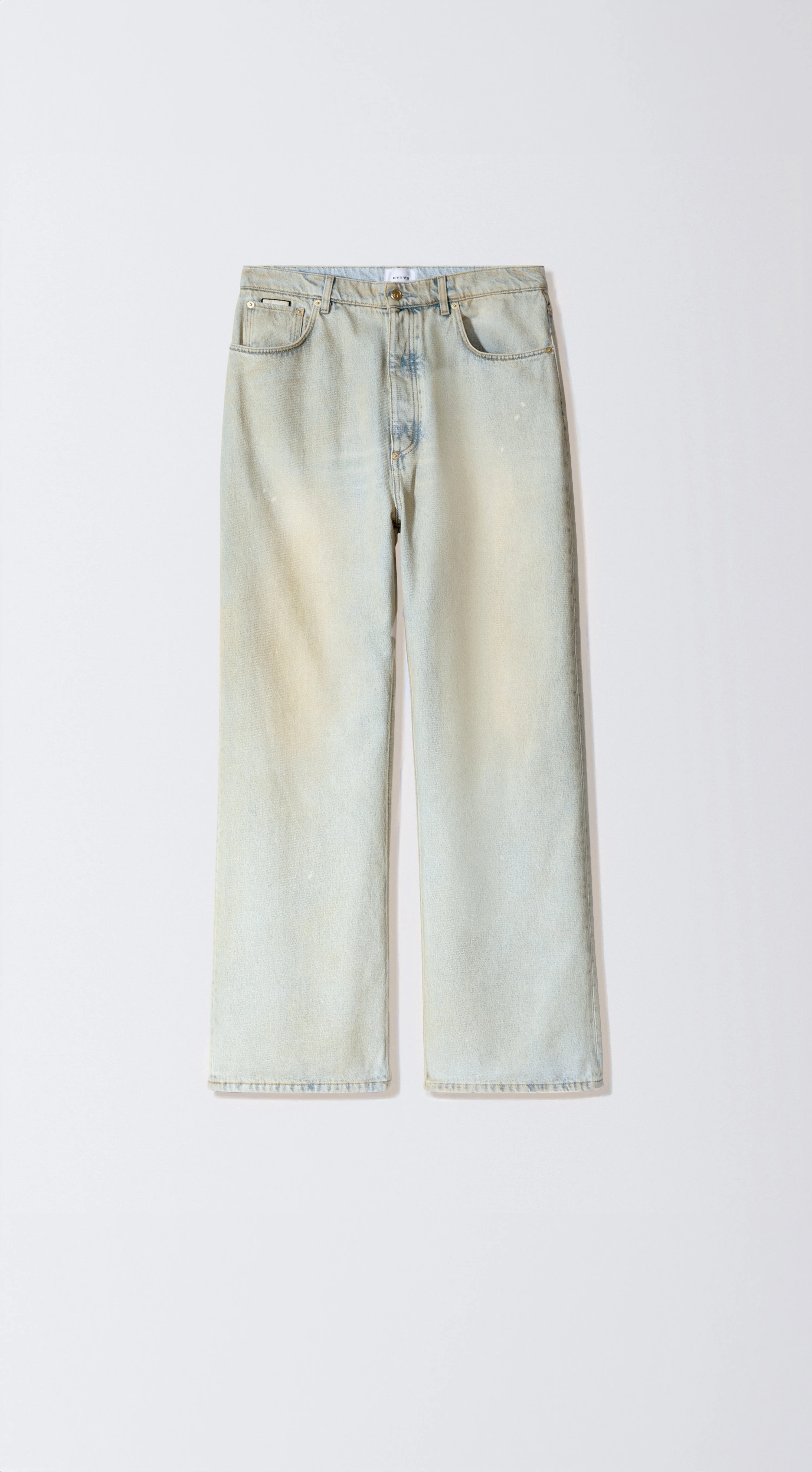 The 'Echo' jeans are cut to an ultra baggy fit with a mid-rise waist. The Sulphur jeans feature a stone washed and overdyed black denim. Finished with EYTYS back pocket embroidery. Elias is 190 / 6'3" and is wearing 30/34. Product Details: - Ultra Baggy fit - Mid rise - Shell: 100% cotton - 5 pocket construction - Tonal stitching - Logo embroidery on back pocket - Button fly - Branded metal trims - Made in Italy
