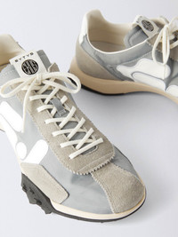 The 'Eros' Suede Alloy are deconstructed '70s racing flats on a lightweight cushioned sole. These round-toe runners, crafted from nylon and suede offer all-day comfort and a flexible yet supportive ride. They come with a breathable liner and the rubber bottomsole features a serrated tread pattern for effective traction. We recommend sizing up if you are in-between sizes. Product details Upper: Nylon/Cow suede/PU leather Lining: PU leather / Tricot Lightweight EVA midsole/Rubber sole Cotton insole Arch support Logo at quarter Cotton laces Satin label on tongue Debossed heel logo