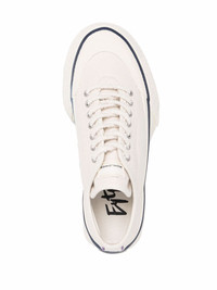 low-top lace-up sneakers ecru front lace-up fastening round toe logo patch to the rear flat rubber sole Made in Italy Composition Sole: Rubber 100% Outer: Fabric 100% Lining: Fabric 100% SIZE & FIT Measurement HEEL 1.18 in(3 cm) Sole height 0.98 in(2.5 cm)