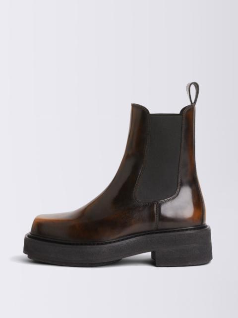 The ’Ortega II’ ankle boot is made in brown brush-off leather with elasticated sides and a squared-off biker toe. An updated version of a minimalistic yet substantial EYTYS classic set on a handcrafted crepe rubber sole. Product Details: - Upper: cow leather - Lining: calf leather/textile - Handmade in Portugal