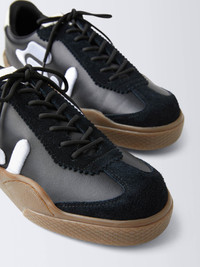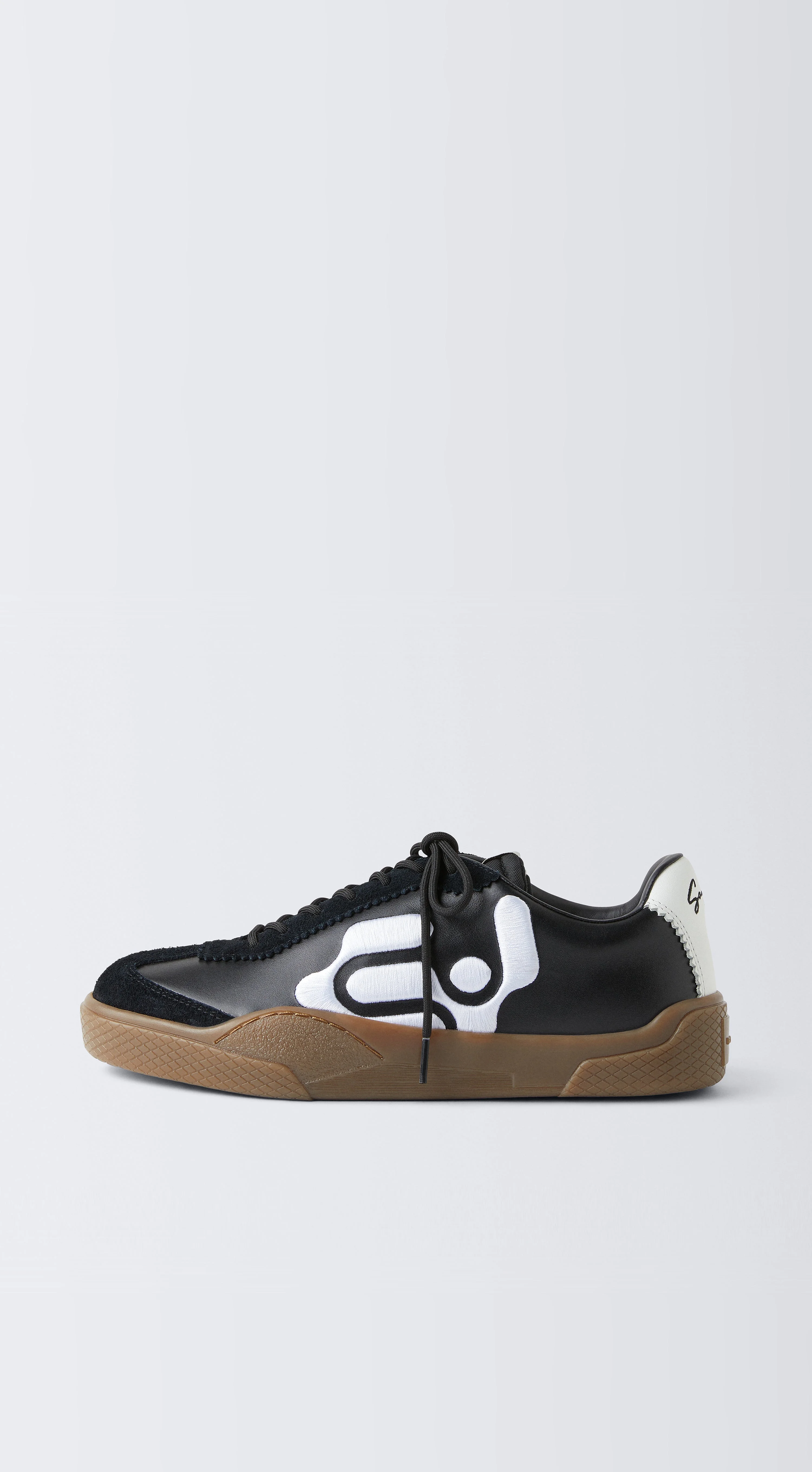 ‘Santos’ is a sophisticated sneaker constructed in ultra-soft nappa leather with a rough suede toe piece, finished with serrated trims and satin relief logo embroidery. The 'Santos Leather Black' is a bold, but classic style, an ideal choice for those seeking a standout piece for everyday wear. Set on a flexible gum rubber sole for a court-sweeping step. Product Details: - Upper: cow leather/cow suede/nylon - Lining: Cotton/PU leather - Rubber sole - Cotton insole - Arch support - Embroidery logo at quarter - Tongue satin label - Round nylon laces - Made in Vietnam