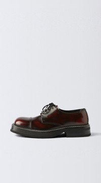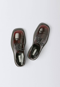 The 'Savoy CT' in Oxblood leather is a sleek update to the classic 'Savoy' silhouette, featuring a toe cap, hexagonal metal eyelets, and contrast stitching. Set on a chiseled rubber sole with a ribbed and double-stitched welt. Finished with ticked laces. Product details - Upper: Cow leather - Lining: Calf leather - Sole: Leather / Tunit / EVA / Rubber - Hexagonal metal eyelets - Metal logo plate - Leather insole - Padded heel collar - Made in Portugal