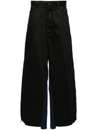 contrasting-panel track pants Highlights - Black/multicolour - Cotton - Front button and zip fastening - Panelled design - Drawstring waist - Rear elasticated waistband - Belt loops - Two side slash pockets - Two rear welt pockets - Logo patch to the rear - Stripe trim - Short side slits - Step hem Imported Composition Cotton 100% SIZE & FIT Model measurements Height 6 ft 1 in(1.85 m) Bust/Chest 35.43 in(90 cm) Hips 36.22 in(92 cm) Waist 28.74 in(73 cm) FittingInformation Designed with a wide leg, offering a loose and roomy fit The partially elasticated waistband offers increased movement and comfort at the waist Made from a midweight non-stretch fabric