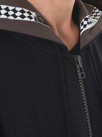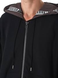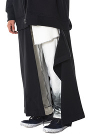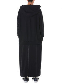 Facetasm long hooded parka in black featuring a zip-detachable skirt panel, heat-pressed graphic at the hood lining with the the brand logo print, main zip closure, rib-knit sleeves, front pouch pockets, straight hem, and relaxed-fit throughout Made in Japan. 100% Cotton One Size.