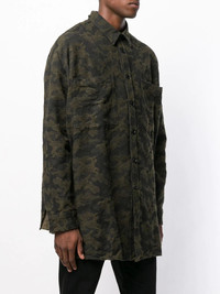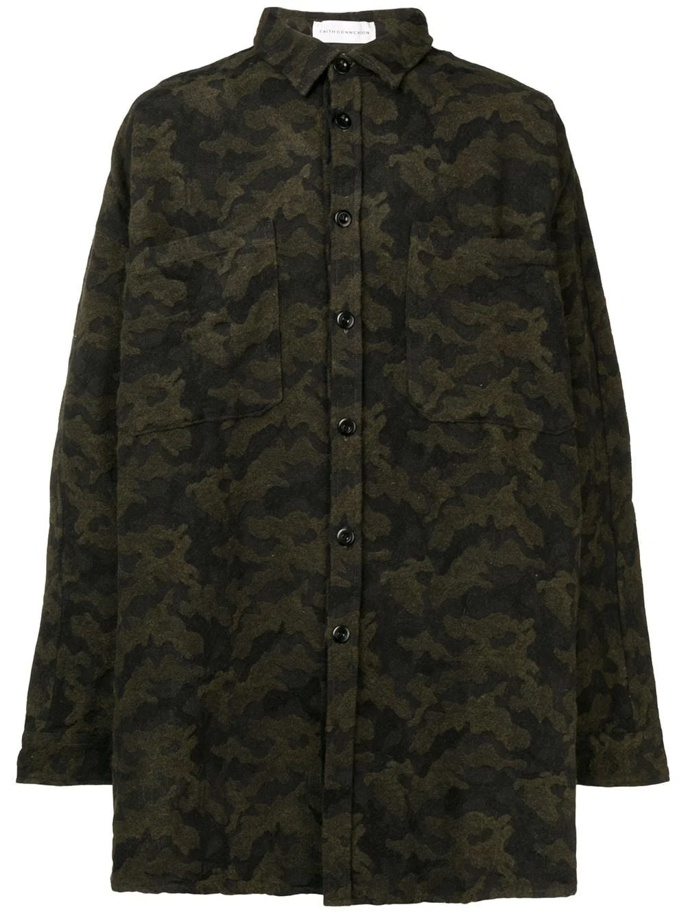 camouflage print shirt Multicolour wool-cotton blend camouflage print shirt from Faith Connexion featuring a classic collar, dropped shoulders, long sleeves, button cuffs, an oversized fit, two chest pockets and a curved hem. Imported Composition Wool 47%, Cotton 34%, Polyester 14%, Acrylic 3%, Viscose 2% SIZE & FIT Model measurements Height 6 ft 2 in(1.88 m) Bust/Chest 36.61 in(93 cm) Hips 35.82 in(91 cm) Waist 27.95 in(71 cm) Washing instructions Dry Clean Only