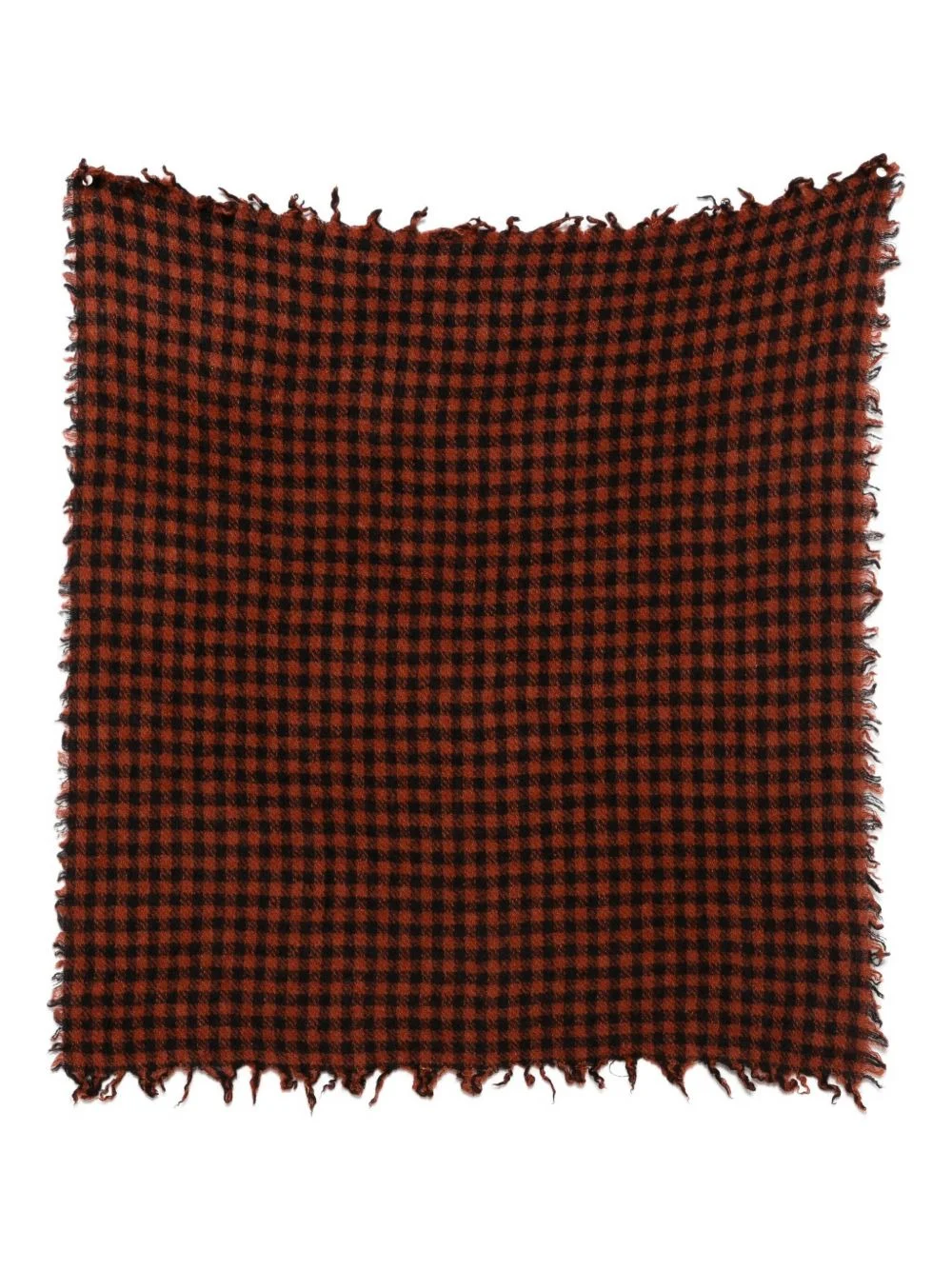 gingham-check scarf Highlights - Brick red - Gingham check pattern - Frayed edge - Square body Imported Composition Cashmere 42%, Wool 27%, Silk 17%, Nylon 14% SIZE & FIT Measurement LENGTH 68.89 in(175 cm) WIDTH 27.55 in(70 cm) Washing instructions Read Manufacturer Guidelines