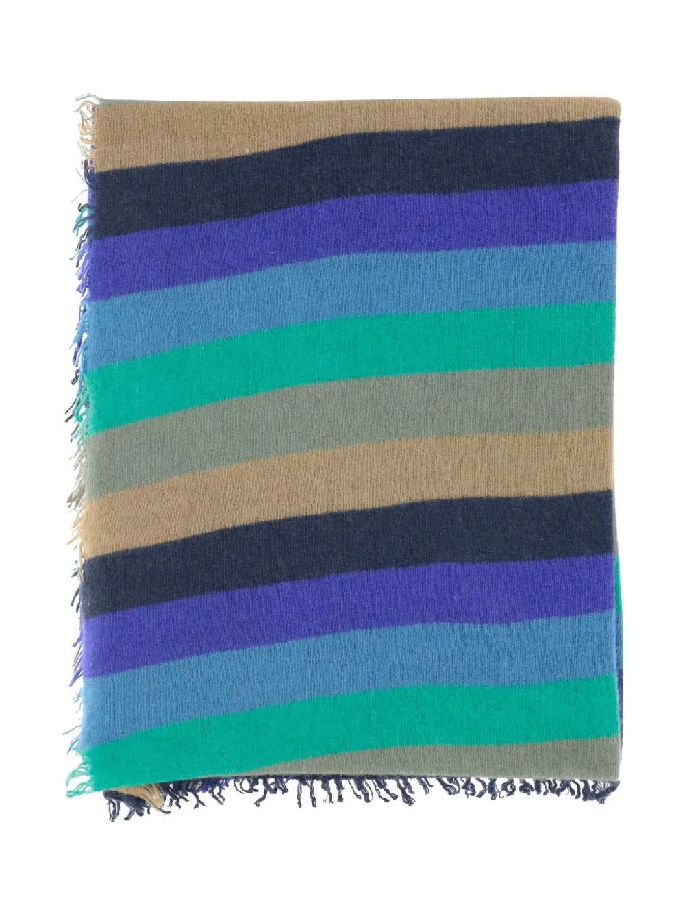 striped frayed-edge scarf Highlights - Light brown and blue - Frayed edges - Cashmere Imported Composition Cashmere 100% SIZE & FIT Measurement LENGTH 68.89 in(175 cm) WIDTH 27.55 in(70 cm) Washing instructions Read Manufacturer Guidelines