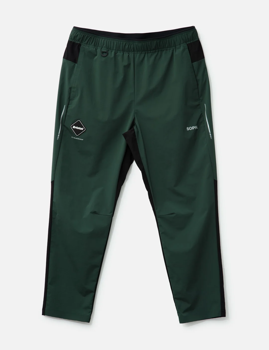 - F.C. Real Bristol - Breathable Trail Pants - Made of lightweight stretch double cloth with stretch Dot Air panel - Water-repellent - Windproof - High breathability - Tapered leg - Elastic waistband with drawstring - D-ring under waistband - Two side pockets - Reflective logo prints - Emblem patch - Two rear zipper pockets - Reflective details on sides - Color: Green - Material: 75% Nylon, 13% Polyester, 12% Polyurethane/ 84% Nylon, 16% Polyurethane - See more Pants and Clothing - Model wears size L - Model measures: Height 187cm, Chest 34”/84cm, Waist 26”/67cm, Hip 36”/88cm - Vendor Code: FCRB-250052