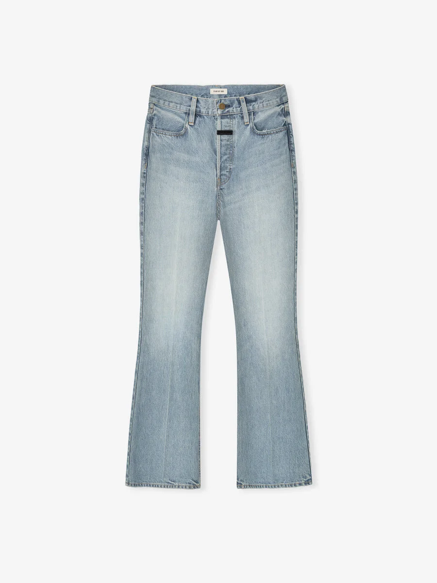 The 70's Jean is made in Japan from 100% cotton denim and has a light indigo wash with hand distressing. The five-pocket style features a relaxed leg that expands into a bootcut. It also includes antique metal hardware and has a Fear of God label at the center front. DETAILS - 100% cotton canvas - Light vintage wash - Relaxed leg and bootcut - 5-pocket style - Antique metal hardware - Fear of God label - Made in Japan