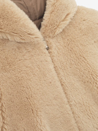 The Hooded Bomber is made in the Italy from alpaca for plush texture and cozy comfort. The signature Fear of God fit is evident in the relaxed silhouette with dropped. Additional details include a front antique brass zipper, side pockets, double-layered hood, wool rib-knit cuffs, and waist hem. A leather Fear of God label is stitched on the hood. DETAILS - 100% Shearling - Relaxed Fit: relaxed body, drop shouders - Double-layer hood - Full zip front - Rib-knit cuffs, waist hem - Side pockets - Fear of God label - Made in Italy