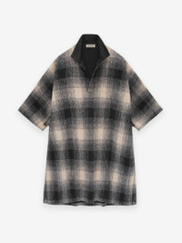 The Polo Collar Poncho is made in Italy from alpaca wool blend to provide a luxurious texture and modern plaid pattern to traditional piece. The piece features a leather polo collar with dropped shoulders and poncho sleeve openings. A Fear of God label is stitched at the back collar. DETAILS - 51% ALPACA WOOL, 37% WOOL, 12% POLYAMIDE - LINING: IRIDESCENT CUPRO - LEATHER POLO COLLAR - RELAXED FIT - FEAR OF GOD LABEL - MADE IN ITALY