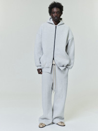 The Athletics Full Zip Hoodie is crafted in Portugal from heavy cotton blend fleece for robust structure. The branding is minimal, featuring an embossed "A" for Athletics and a Fear of God label. This double-layer hoodie features a relaxed fit with drop shoulders, side pockets, rib-knit cuffs and waist-hem. DETAILS - 69% cotton, 31% polyester fleece - Model is 6'2" 1/2 and wears size Medium in Melange Grey - Double-layer hood - Full-zip front - Side pockets - Rib-knit cuffs, waist hem - Embossed Athletics "A" branding - Fear of God label - Made in Portugal