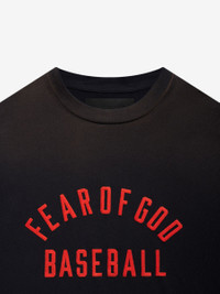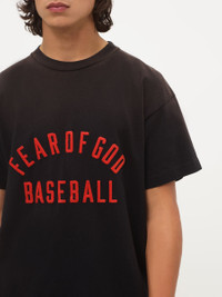 America's favorite pastime inspires the Baseball Tee. Fear of God Baseball is presented in textured velvet flocking influenced by vintage collegiate sweats. The USA knitted, combed cotton jersey and ribbed knit neckline create a super soft, comfortable tee shirt. DETAILS - FEAR OF GOD BASEBALL LOGO IN TEXTURED VELVET FLOCKING - RIBBED KNIT NECKLINE - LEATHER FEAR OF GOD LABEL - COMBED COTTON 8.75OZ - MADE IN THE USA