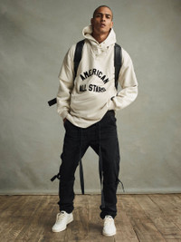 The American All Stars Henley Tee continues the celebration of baseball with strong graphics inspired by the Negro Leagues. The henley neckline and relaxed fit provide easy comfort. The AMERICAN ALL STARS and A7 logos are presented in textured velvet flocking influenced by vintage collegiate sweats. DETAILS - AMERICAN ALL STARS and A7 logo in textured velvet flocking - Henley neckline - Horn buttons - Cotton jersey 8.75oz - Made in the USA - Model is 6ft 2in and wearing a size M