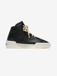The Basketball Sneaker is made from high-quality flat Italian leather and snakeskin, featuring a high-top design influenced by the heritage of Fear of God sportswear. This sculpted sneaker includes a laced front, a Fear of God graphic logo, a rubber Aerobic outsole, and a Fear of God black bar label on the heel.