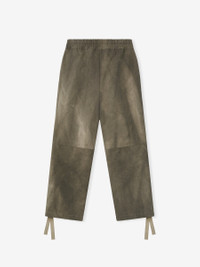 The Split Knee Pant is crafted in Italy from 100% heavy cotton and showcases a distinctive dyeing process. This relaxed, wide-leg style features a knee seam, side pockets, and an encased elastic waistband with drawstrings at both the waist and ankles, allowing for adjustable styling. DETAILS - Fabric 100% cotton - Relaxed, wide leg fit - Elastic waistband with drawstrings - Fear of God label - Made in Italy