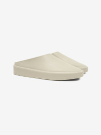 The California is a backless slip-on shoe with sculptural design that strictly emphasizes functionality, with backless construction to slip on and off with ease, an inner vent to provide airflow, and a raised tread for traction. The shoe is entirely made of innovative foam rubber and produced in Italy from patented XL Extralight® Technology. The custom Extrabounce compound is exclusively developed for Fear of God, a material that is 3 x lighter than common foam and allows for greater flexibility, comfort, and durability. DETAILS - Slip on - Debossed Fear of God logo on heel - Custom extrabounce foam - Made in Italy - Important note: similar to leather, the overall nature of the foam is to wrinkle, crease, and patina