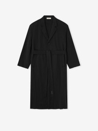 The Classic Unlined Overcoat is expertly crafted in Italy from tencel-nylon for lightweight stretch comfort. This single-breasted coat is unstructured to create a soft voluminous silhouette. Key details include horn button closures, side pockets, a self-fabric belt, and Fear of God label stitched onto the sleeve. DETAILS - Fabric: 93% Lyocell, 7% polyamide - Lining: 53% Cupro, 47% polybutylene - Pocketing: 100% cotton - Relaxed fit - Single breasted - Peak lapel - Horn button - Side pockets - Fear of God label - Made in Italy