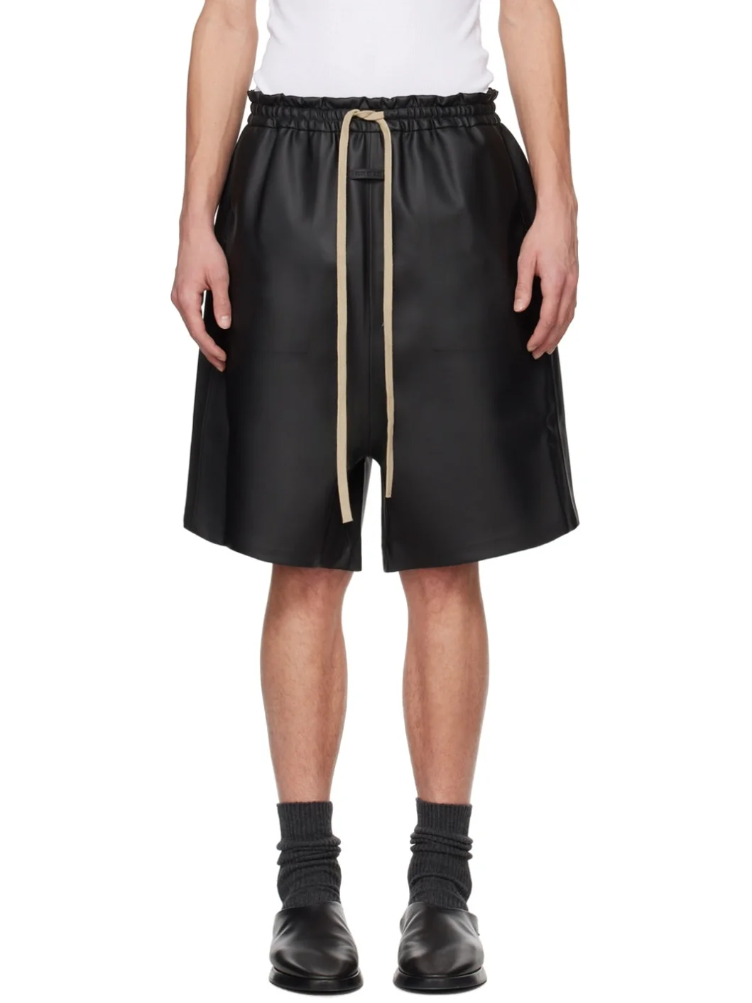 Polyurethane-coated polyester twill shorts. · Drawstring at elasticized waistband · Two-pocket styling · Leather logo patch at front Supplier color: Black 52% polyurethane, 48% polyester. Made in Italy 241782M193003