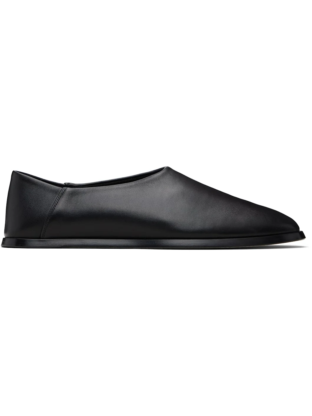 Buffed leather slip-on loafers. · Collapsible heel counter · Suede lining · Handcrafted stacked wood midsole · Leather sole with rubber injection Supplier color: Black Upper: leather. Sole: leather, rubber. Made in Italy 252782M231002