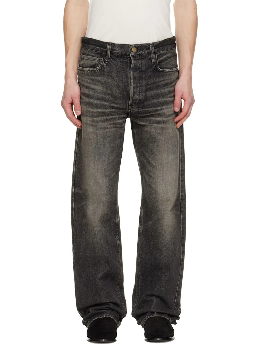 Non-stretch denim jeans. · Fading and whiskering throughout · Loose-fit and straight-leg · Belt loops · Five-pocket styling · Button fly · Rubberized logo patch at front · Logo-engraved antiqued gold-tone hardware Supplier color: Worn black 100% cotton. Made in Japan 252782M186006