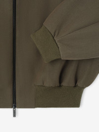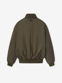 The Bomber Jacket is crafted in Italy from Fear of God's signature weighted wool-cotton twill. The heavy-weight fabric combined with polyfill insulation creates a prominent silhouette. Details include a full front zipper, welt pockets, and rib-knit collar cuffs, and waist hem. A Fear of God label is stitched at the back collar. DETAILS - Fabric: 54% Virgin Wool, 46% cotton twill - Lining: 53% Cupro, 47% polybutylene - Pocketing: 100% cotton - Fill: 100% Polyester - Relaxed Fit - Full Zip Front - Rib-Knit collar, cuffs, waist-hem - Side pockets - Fear of God label - Made in Italy