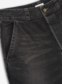 The Utility Trouser is made in Japan from 100% cotton canvas with a garment wash and hand distressing. The workwear style has a relaxed, straight leg for comfort. Features include antique metal hardware, slant pockets, large utility pockets on the back, and a Fear of God label on the center front. DETAILS - 100% cotton canvas - Relaxed, straight leg - Slant pockets - Back utility pockets - Antique metal hardware - Fear of God label - Made in Japan