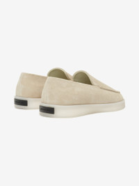 The Casual Loafer is crafted in Italy from soft textured Italian suede with rubber 101 outsole for everyday comfort. The traditional slip-on Loafer is evident in the moccasin stitch, but updated in a contemporary streamlined silhouette. The style is branded with a Fear of God black bar label on the heel. DETAILS - FABRIC: ITALIAN SUEDE - OUTSOLE: RUBBER MOC LOW SOLE - SLIP–ON STYLE - FEAR OF GOD BLACK BAR LABEL - MADE IN ITALY