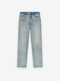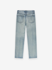 The Classic 5 Pocket Jean is made in Japan from vintage light indigo Japanese denim and designed in a timeless straight-leg fit. The five-pocket style is detailed with antique brass hardware and a raw ankle hem. The Fear of God leather label is stitched on center front. DETAILS - FABRIC: 100% COTTON DENIM - LIGHT INDIGO WASH - CLASSIC STRAIGHT LEG FIT - 5-POCKET STYLE - ANTIQUE BRASS HARDWARE - RAW ANKLE HEM - LEATHER FEAR OF GOD LABEL - MADE IN JAPAN