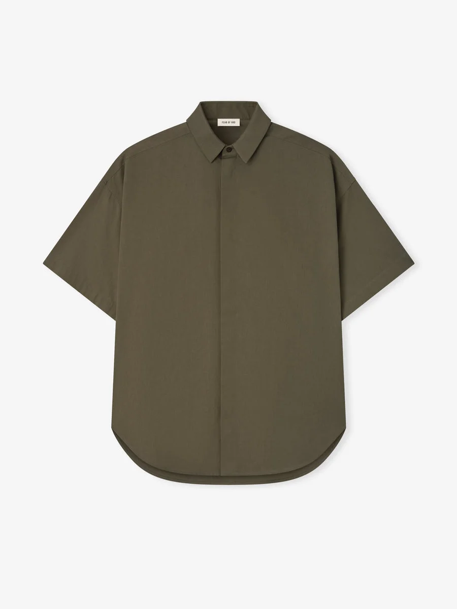 The Classic Short Sleeve Shirt is tailored in Italy from virgin wool-cotton blend with elastane for stretch comfort. The classic Oxford style is remade with relaxed proportions, and minimalist covered placket with horn buttons. A Fear of God label is stitched at the back collar. DETAILS - Fabric: 46% Virgin Wool, 52% cotton, 2% elastane - Point collar - Covered placket - Horn buttons - Fear of God label - Made in Italy